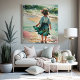 Poster Menina na praia, ondas oceânicas aquáticas,