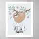 Esta poster de crianças linda e feminina apresenta um lindo, desenhado à mão, rabisco de preguiça dormindo com flores e folhas. Esta design também tem um lugar para você adicionar o nome da sua garota. A selva perfeita, design de vida selvagem para qualquer quarto de criança ou berçário de bebê!