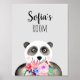 Poster Meninas Flores Lindas Aquarela Panda e Nome