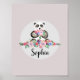 Poster Meninas Flores Lindas Aquarela Panda e Nome