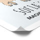 Este pôster para quarto de menina apresenta uma exquisita caricatura de lhama com arco-íris desenhada à mão. Este adorável design também inclui um espaço para você adicionar um nome e personalizar uma descrição. O design perfeito temático animal e caprichoso para qualquer quarto de criança ou berçário.