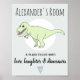 Poster Menino Bebê Doodle Dinosaur T-Rex com Nome Quarto