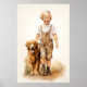 Aquarela vintage com um menino e seu cachorro. Presente ideal para amantes de cachorros, adultos e crianças, homens, mulheres, meninos e meninas. Perfeito para o quarto de uma criança ou berçário
