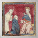 F.117r Messengers, da Escola Francesa, contando a Carlos Magno a vitória sobre os Saracens, das Grandes Chroniques de França, 1375-79, localizado no município biblioteque, Castres, França. O F.117r Messengers contando a Carlos Magno a vitória sobre os Saracens, das Grandes Chroniques de França, 1375-79, foi criado por volta do 14.