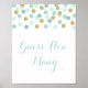 Use nosso sinal de jogo de bolinhas de menta e ouro, chamado "Adivinhem quantas", para mostrar com seu jogo de adivinhação de doces. Vocês podem ver nossos cartões de jogo coordenadores e outros itens de chá de fraldas em nossa coleção de bolinhas reluzente.