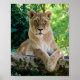 Lionesa (Panthera leo) sobre a rocha entre a vegetação