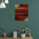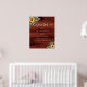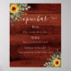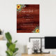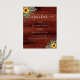 Madeira marrom rustica como fundo. Decorado com girassóis de cor aquosa e eucalipto verde. Com o texto: Abrir bar. Personalize e adicione o menu bar.