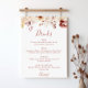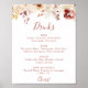 Este cartaz de cardápio de bebidas florais é perfeito para um casamento rústico. A design apresenta uma cor de água branca, burlada, rosas cor-de-rosa e folhas de queda.