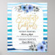 Signature Cocktail Drink Menu Wedding Decor Poster Modelo - Elegante Dourado Script Watercolor Floral com Blue Brush Wave Stripes. Um Design Perfeito Para O Seu Grande Dia! Todo Estilo De Texto, Cores, Tamanhos Podem Ser Modificados Para Ajustado Das Suas Necessidades.