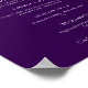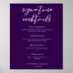 Esta poster de assinatura roxa de casamento roxa apresenta uma bela tipografia branca em uma sólida violeta profunda para uma cerimônia noturna no inverno. Um roteiro minimalista e uma cor ousada fazem o menu do bar pop e se destacam da multidão.