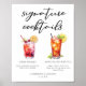 Este poster de cardápio de coquetéis de assinaturas chic apresenta tipografia preta personalizada acima de 2 bebidas e seus ingredientes para seu bar de casamento. Um lindo Shirley Temple Sujo e um desenho de chá gelado de Long Island adiciona um talento legal ao menu do seu bar. Preencha com os nomes dos casais e a data para sua recepção.
