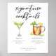 Este poster de assinatura de música apresenta uma simples tipografia negra acima de 2 bebidas e seus ingredientes para seu bar de casamento. Um bonito desenho de Martini e Moscou adiciona um talento legal ao seu cardápio de bar. Preencha com os nomes dos casais e a data para sua recepção.
