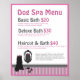 Poster Menu de Spa de Embelezamento Canino - Personalizáv