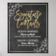 Menu Drink Cocktail de Assinatura Moderna Modelos de Poster de Decoração de Casamento - Script Dourado Elegante e Quadro Floral Branco no Fundo Grunge Black Chalkboard. Um Design perfeito para o seu grande dia. Todo estilo de texto, cores, tamanhos podem ser modificados para ajustado das suas necessidades!