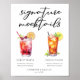 Este poster de caramujos com assinatura chic apresenta uma simples tiopgrafia negra acima de 2 bebidas bonitinhas e seus ingredientes para seu bar de casamento. Um Shirley Temple e uma bebida Arnold Palmer não alcoólica adicionam um talento legal ao seu menu de bar. Preencha com os nomes dos casais e a data para sua recepção.