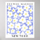 Poster de mercado de flores com nome editável da cidade e simples florescências de margarida branca com centro amarelo em azul texturizado para uma decoração de casa de tendências