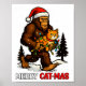 Poster Merry Catmas Bigfoot And Lights Santa Hat Funny Ca
