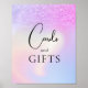 Direcione seus convidados para a mesa de presentes com este letreiro elegante com um fundo gradiente de brilho rosa e roxo com gradiente holográfico. Perfeito para criar um tema de decoração coeso e elegante no seu chá de noiva.