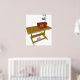 Uma mesa de costura com uma máquina de costura. Esta design parece realmente eficaz nestes Poster