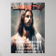 Mesmo na sua hora mais escura, o amor de Jesus brilhou o mais brilhante, iluminando o caminho para todos nós Um trabalho de arte muito detalhado e vibrante de uma figura masculina, presumivelmente representando o Cristo de Jesus, crucificado numa cruz de madeira. Ele tem cabelos longos e fluidos e barba, e seu físico é muscular. A figura é cortada num pano multicolorido, com tons de vermelho, azul e roxo. Um colar com um pingente de cruz é visível ao redor do pescoço. O fundo é abstrato, com uma mistura de sombras escuras e claras, possivelmente representando o céu ou uma atmosfera tumultuosa. O trabalho de arte é renderizado no estilo aquarela, com pincéis fluidos e uma mistura de cores.