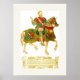 Impressão medieval. Imagem do Cavaleiro Mestre do Armário no cavalo. O texto diz: Sir George Howarde Knight Mestre das Maiorias de Qwenes 1561.