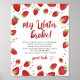 Divirta-se ao seu chá de fraldas com este cartaz de mesa 8x10 com um charmoso design de morango de aquarela. O texto instrui os hóspedes a participar do jogo "My Water Broke", onde uma figura de bebê congelada é colocada em uma bebida. A primeira pessoa a encontrar o seu bebê a flutuar livremente grita "My Water Broke!", fazer de um momento memorável e divertido na sua celebração ao chá de fraldas.