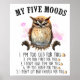 Quem tem todo o humor? Esta design divertida mostra uma coruja adorável que anda através de 'Meus Cinco Moods' — de sábio e sério a totalmente sobre ele. Perfeito para quem se relaciona à montanha russa das emoções cotidianas, com um toque de diversão infantil. Quer você seja uma coruja noturna, um entusiasta de pássaros, ou apenas um amor expressando sua vibração, esta design é uma capota para cada ocasião. Excelente para camisas, canecas ou qualquer item a que você queira adicionar personalidade!"