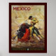 Viagens vintage de poster do México ilustrado com uma tourada tradicional.