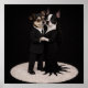 Luna, a Boston Terrier, e Louie, o JackChi, estão curtindo um pouco de cosplay de um de seus programas de TV favoritos, A Família Addams, como Gomez e Morticia Addams.