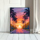 Miami Beach Sunset Palm Tree Tropical Poster Painting
