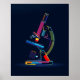 Abstrato microscópio biológico, instrumento farmacêutico de aumento de tintas multicoloridas Ilustração colorida de pinturas
