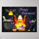Este poster de Natal Feliz do Dia das Bruxas apresenta canas doces engraçadas, caldeiros assustadores, cupcakes e uma bota de bruxas engraçada cheia de doces. Alguns gráficos por artwork©delightful-doodles.com -
