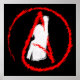 Poster de um homem ou mulher branco com o punho no ar com a letra A vermelha do escarlate para o ateísmo em fundo preto.