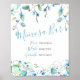 Use este letreiro de barra de Mimosa floral para decorar sua mesa e ajudar os convidados a saber como preparar suas bebidas. Criado usando minhas elegantes orquídeas azuis em aquarela sobre um fundo branco crocante, este letreiro é perfeito para brunch e champanhe, despedidas de solteira, chás de bebê, casamentos de primavera e verão ou o que você quiser. A tipografia é definida em uma fonte moderna de letras à mão. Para ver decorações de festa e letreiros de estação de bebidas correspondentes da Victoria Rigali Designs, visite www.zazzle.com/dotellabelle