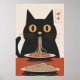 Poster Minimalist Black Cat Eating Spaghetti Japanese Art