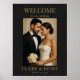 Welcome your guests in chic simplicity with this minimalist black photo modern wedding welcome poster. Featuring a clean black layout, refined typography, and your custom photo, this design exudes contemporary elegance. Perfect for modern or black-tie weddings, this welcome sign looks stunning displayed on an easel or framed at your ceremony or reception entrance. Personalize with your names, wedding date, and location — print-ready and crafted to complement your modern wedding aesthetic.