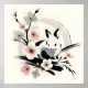 Poster Minimalist Zen Ink Bunny Cherry Blossoms