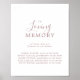 Este mínimo sinal de memória amorosa de rosa é perfeito para um casamento simples. A design romântica moderna apresenta clássico de ouro rosa e tipografia branca emparelhada com uma caligrafia rustica, mas elegante, com estilo antigo, com letra de mão. Personalizável em qualquer cor. Mantenha o design simples e elegante, como está, ou personalize-o adicionando seus próprios gráficos e trabalhos de arte.