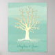 Folha de ouro simples, elegante, sem folha - para impressões digitais dos hóspedes, em combinação com as ondas verdes da menta-d'água. Livro de Convidado de Casamento de Árvore Impressa Digital, único e adorável, com citação de amor personalizada. Que O Amor Cresça!
