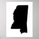 A forma do estado do Mississippi em preto e branco. Altere a cor de fundo ou adicione uma mensagem de texto de souvenir personalizada.