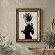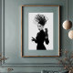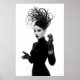 Faça uma declaração impressionante com este impressão de arte branco e preto cativante, uma verdadeira obra-prima da moda de vanguarda e expressão artística. Este retrato convincente apresenta uma mulher de fascínio enigmático, coroada com um extraordinário chapéu preto escultórico que se assemelha a um emaranhado de elementos artísticos, complementado por um delicado e atraente véu. Vestida em uma camisola preta elegante e luvas de couro longas e elegantes, seu traje minimalista fornece uma canvas sofisticada para o dramático chapéu e acessório de braço brilhante. Sua pele pálida, lábios escuros ousados e um olhar piercing criam um contraste mesmerizante contra seu conjunto escuro e o fundo branco pristino, enfatizando sua presença poderosa. Posicionado com mãos expressivas, este trabalho de arte incorpora um encanto confiante e misterioso. Perfeito para espaços modernos, estúdios de moda, ou qualquer decoração que busque um toque de elegância única, artista ousada, e uma narrativa visual verdadeiramente inesquecível.