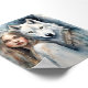 Ao fundo da névoa das cinzas, nas delicadas sombras da água, aparece a figura de uma eslava, cercada por uma aura mística. Seu olhar é cheio de poder e determinação, e ao seu lado está um lobo branco majestoso, um símbolo da natureza selvagem e liberdade indomada. Essa harmonia entre homem e animal exige a descoberta de lendas esquecidas e os caminhos encantados dos ancestrais eslavos