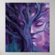 Este pôster surrealista apresenta uma pintura a óleo roxa de uma face serena de mulher entrelaçada com galhos retorcidos de árvore - retrato sonhador e texturizado que evoca arte mística inspirada na natureza. Finalizado em um estilo pictórico de óleo acrílico.