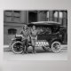 Foto antiga de duas mulheres de uniforme com um carro velho e legal. Foto de 1922.