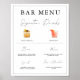 Este cartaz de menu de casamento imprimível do DIY apresenta uma fonte escrita à mão e um design moderno minimalista. Este Modelo de Sinal de Bar de Casamento de Flores Selvagens é perfeito para você se você estiver procurando por uma Sinalização de Casamento Editável bonito e fácil de usar.