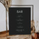 Este cartaz de menu de casamento imprimível do DIY apresenta uma fonte escrita à mão e um design moderno minimalista. Este Modelo de Sinal de Bar Negra de Casamento é perfeito para você se você estiver buscando uma Sinalização de Casamento Editável bonito e fácil de usar.