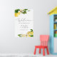 Este poster de boas-vindas do jardim de limão moderno de 24 x 36" é perfeito para um casamento de primavera ou verão. O design mediterrânico rústico apresenta limões aquosos brilhantes e bonitos com flores brancas boêmicas e folhas verdes elegantes. Personalize o poster com o nome da noiva e do noivo, e a data do casamento.