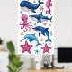 Poster Moderno e elegante aquarela Animais do mar 3