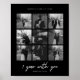 Impressão de Arte para Parede de Colagem de 9 Fotos Preto e Branco Minimalista Moderno para 1º Aniversário de Casamento. Personalize este modelo de impressão de arte para parede de casamento minimalista e elegante com 9 das suas fotos de casamento favoritas, fotos de noivado ou fotos de casal, seus nomes e uma data de casamento ou outra data memorável. Apresenta "1 ano com você" em bela letra cursiva e "para sempre pela frente" abaixo. Faz um presente perfeito para o seu namorado ou namorada, ou um presente de aniversário de 1º casamento para o seu marido ou esposa.