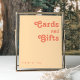 Este sinal moderno retrô de cartões e presentes de cor laranja creme é perfeito para o seu casamento simples, vintage, colorido, tropical e boêmio de verão. A sua fonte única boêmia de meados do século dá a este design uma vibração clássica minimalista e hippie. Se você está procurando por um design que apresente cores brilhantes e ousadas para o seu casamento criativo de praia dos anos 70, então este produto, e sua coleção de casamento coordenada, são exatamente o que você está procurando. Sinta-se à vontade para alterar a cor e adicionar sua própria arte, gráficos ou fotos. Se tiver alguma dúvida sobre o design deste produto, por favor, sinta-se à vontade para entrar em contato conosco!